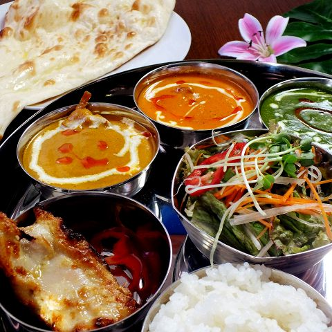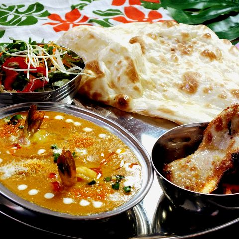 6種から1つお選び下さい。[チキン/キーマ/ベジタブル/海老/緑豆/ラム]カレー・サラダ・チキン・ナンかライス・ドリンク