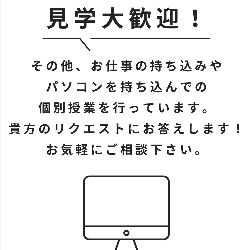 ・完全個別学習だから「他の人のペースに追いつけない」「ついていけない」という不安ナシ。