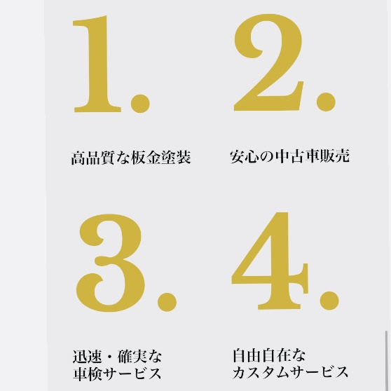 当店は、自動車の板金塗装、中古車販売、整備サービスを通じて、お客様の大切な愛車に新たな価値を提供します。プロの技術と丁寧なサービスで、安心してお任せいただけるパートナーを目指しています。