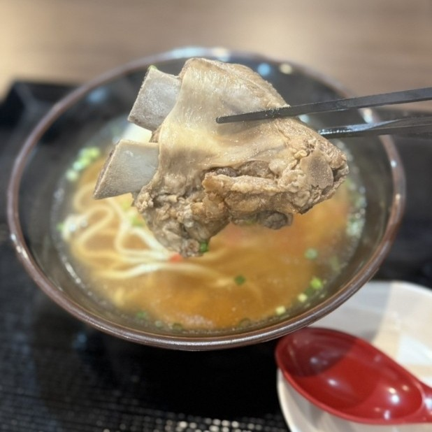 看板メニューは、ボリューム満点の「ソーキそば」。柔らかく煮込まれたソーキ(豚のあばら肉)は、箸でほろりとほどけるほどのやわらかさ。じっくり取った出汁の旨みと相まって、シンプルながら深い味わいが広がります。また、自家製の餃子や中華風メニューも人気で、家族連れやお一人様でも気軽に楽しめるラインナップが魅力。