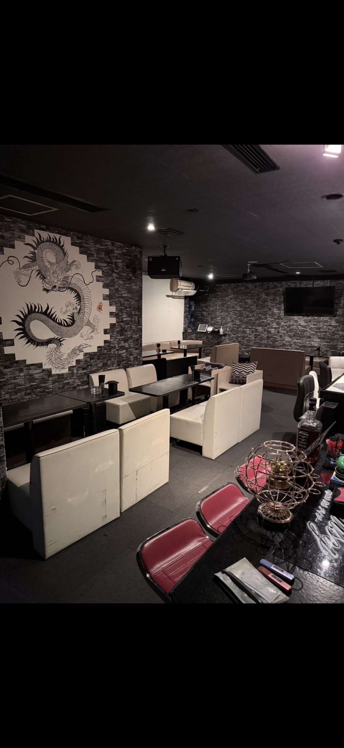 洗練されたモノトーンの店内と、壁に描かれたドラゴンアートが非日常を演出します。