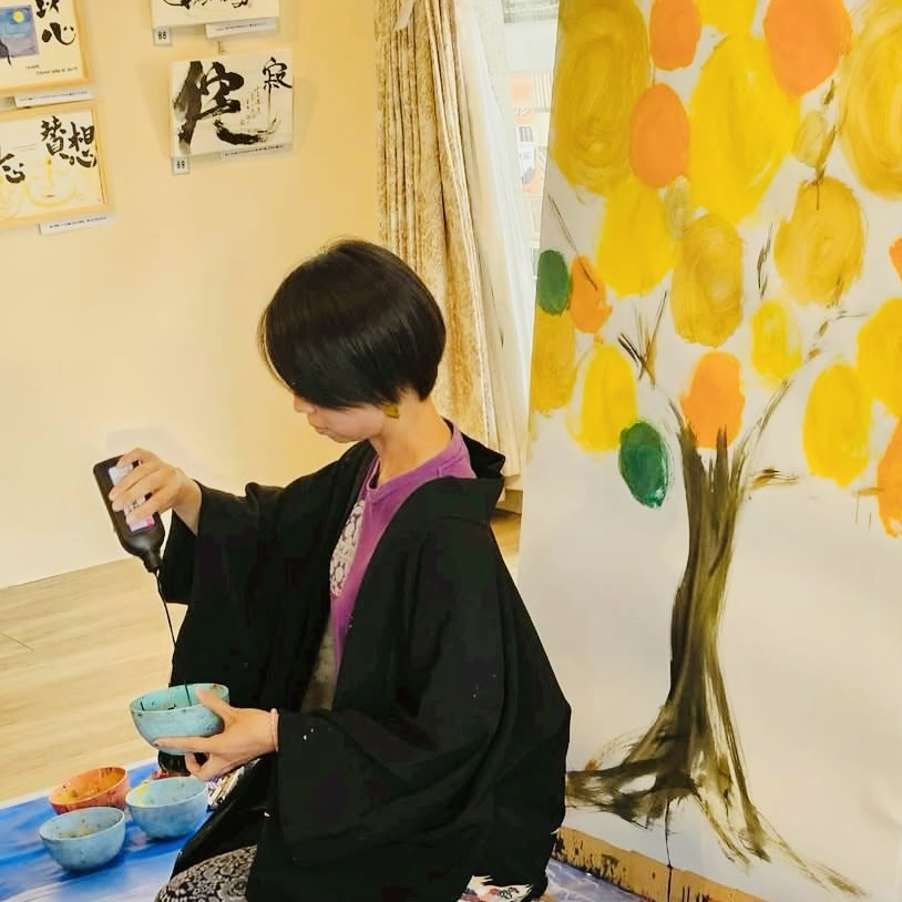 看護師として勤務されている北野さん。お子様の育児休暇中に筆文字と出会いました。自由に自己表現してゆく中で、自身で作っている枠を突破してゆくことが出来る「筆文字」というものを広めたいと思い起業されたそうです。筆文字は書道とは違い、綺麗に書くのではなく自由にその人らしく書くそうです。コンセプトとして「半径3mの人を幸せにする」ご自身の周りの方々に思いを込めた文字で幸せになってほしいとお話されました。参加型のワークショップでは見本もなくNGもないので自由に書いて楽しんで頂けると思います。書くことで自己表現ができ、個展や作品展で来て頂いた方々に文字から癒されて頂きたいそうです。筆文字のワークショップの他、名刺デザインの作成・壁画も製作されています。北野さんの作品は、とにかく自由にその方の想いや世界観を形にするお手伝いをされていますので、店舗様などのお役に立てること間違いなしです。まわりの大切な方々に笑顔になって頂きたい、生徒さんやお客さんへの感謝でお値段以上の作品を届けさせて頂きたいとお話されました。普段言えない言葉を文字にして大切な方へ届けてみませんか。