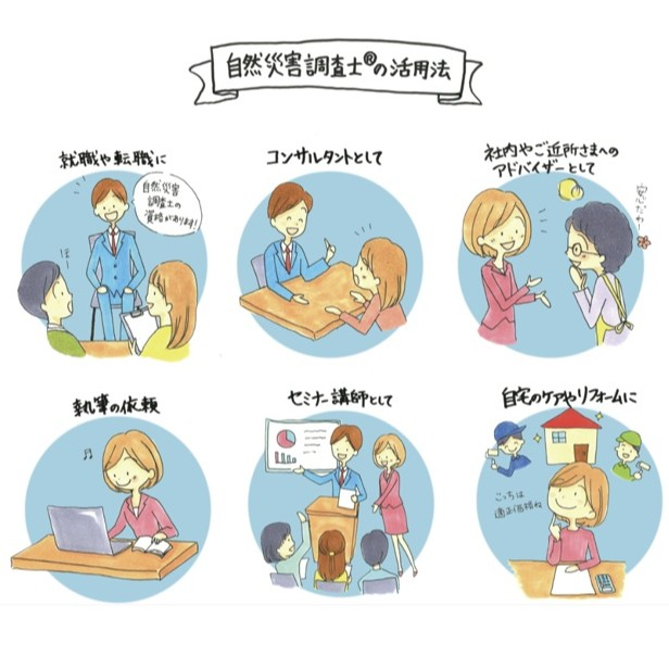 自然災害調査士の知識は、被災地支援だけでなく、コンサルティング、セミナー講師、相談業務、自宅の防災・リフォーム判断など幅広く活用できます。専門性とやさしさを併せ持ち、身近な人の安心を守れる“実践型資格”として注目されています。