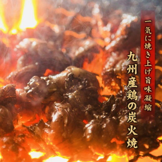 コリコリとした歯ごたえがクセになる、旨味の強い「薩摩鶏」を使用した炭火焼。備長炭を使い、直火に近い感覚でさっと焼き上げます。さっと仕上げることで旨味を逃さず中に閉じ込め、噛むほどに旨味溢れる一品に仕上げました。