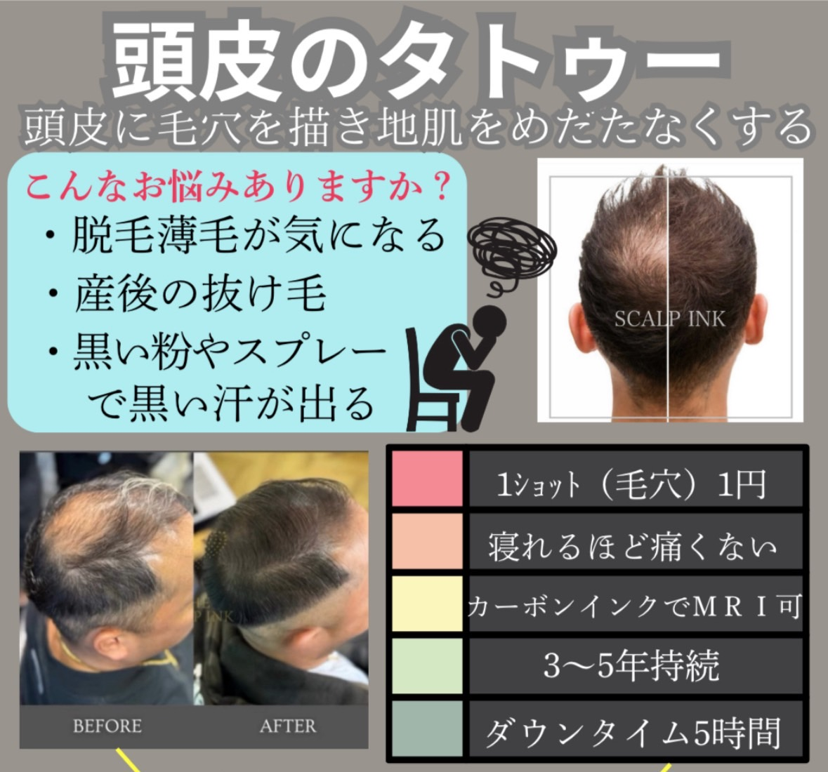 ◎頭頂部 0タイプ 分け目・後頭部→平均 10万発 施術回数2~3回
