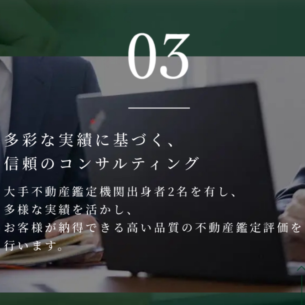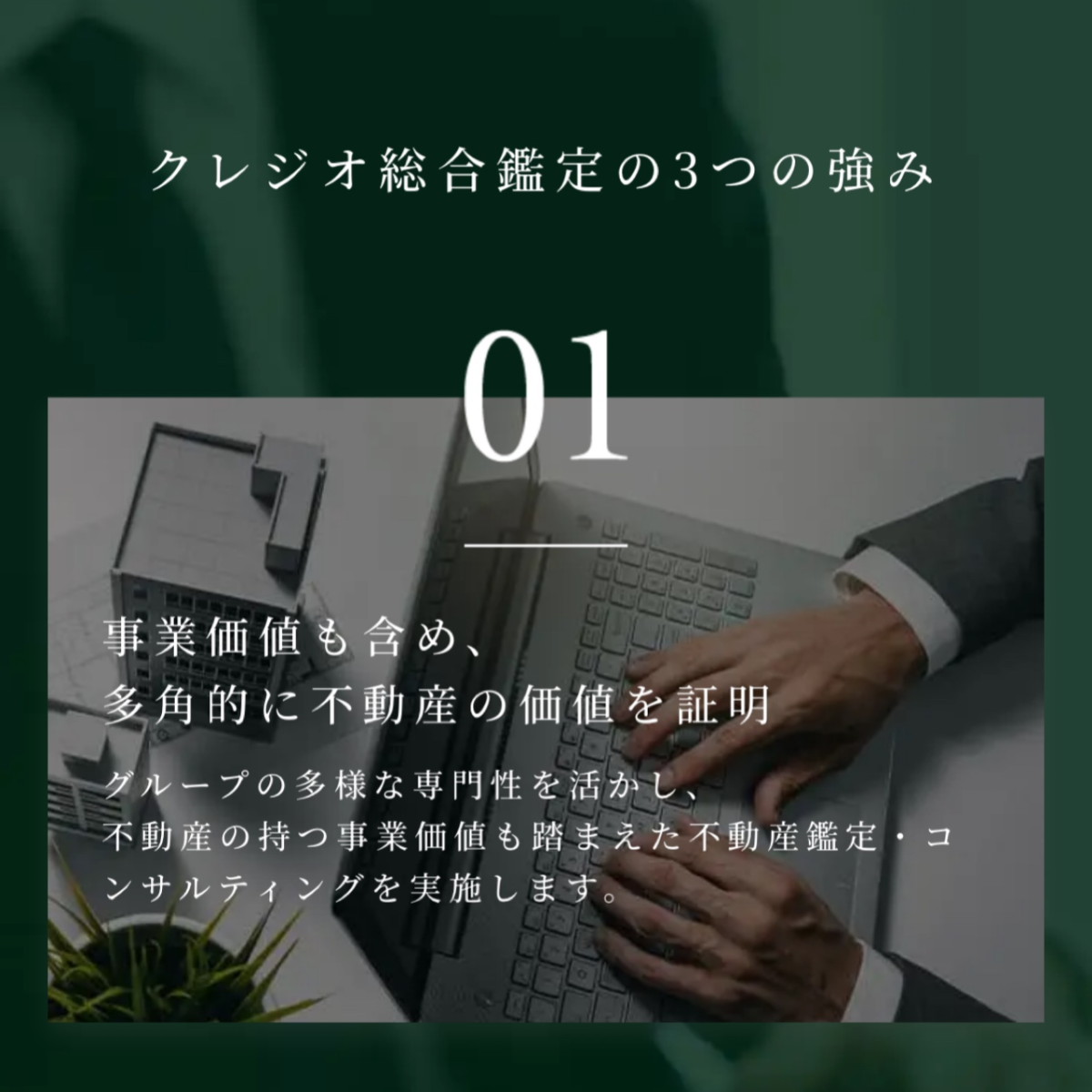 不動産鑑定士による確かな専門性と、多角的な視点を活かし、不動産の価値だけでなく事業価値も含めた総合的な評価を提供。地域に根差した活動を通じて、企業や地域社会の未来づくりに貢献しています。