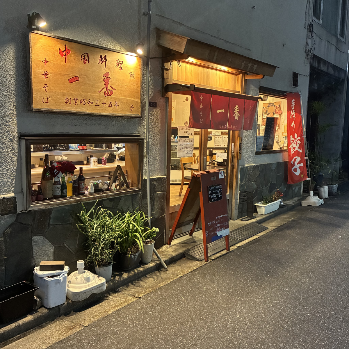 外観は赤い暖簾に "一番"の文字!は歴史を感じます。常連さんが集まり、まるで「帰ってきた」と感じられる場所。
