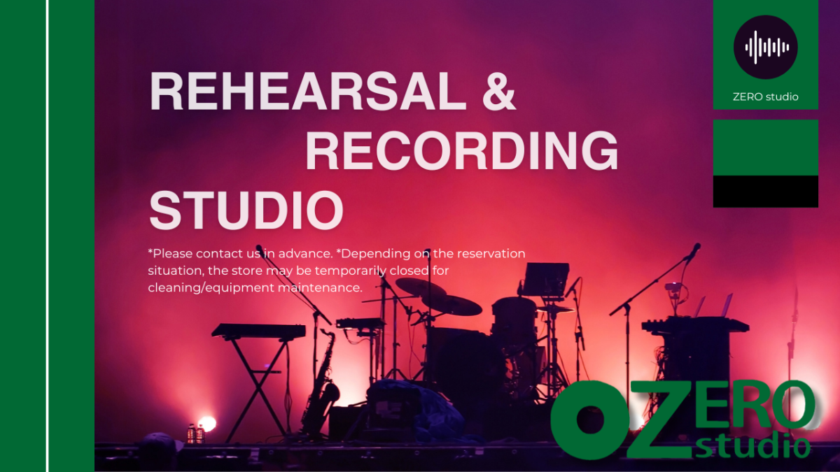 「ZERO studio(ゼロスタジオ)」 は、アーティストやバンド、音楽を愛するすべての人に開かれたリハーサル&レコーディングスタジオです。