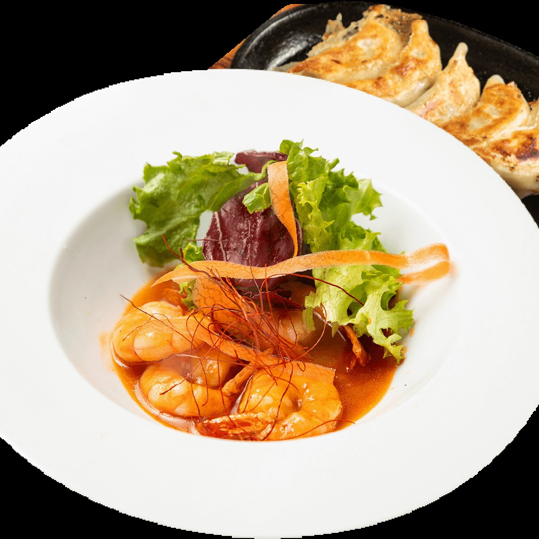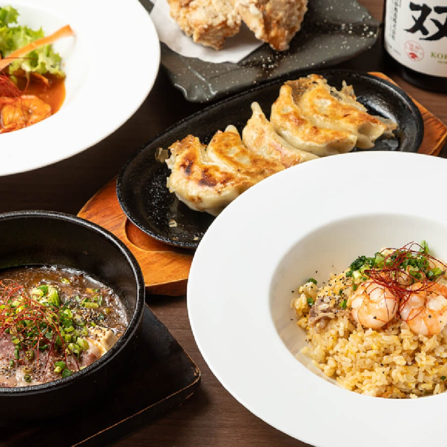 辛さが選べる四川風牛辛麻婆豆腐をはじめ、炙りチーズ麻婆豆腐やチーズ×大葉の焼き餃子、海老のチリソース、国産牛のピリ辛炙りユッケなど、多彩な“旨辛”中華が楽しめる Chinese Dining 久蘭。名物の石焼gomoku炒飯は、食事の〆にもぴったりと評判です。ザーサイ、梅水晶など、お酒が進む酒肴も充実しています。