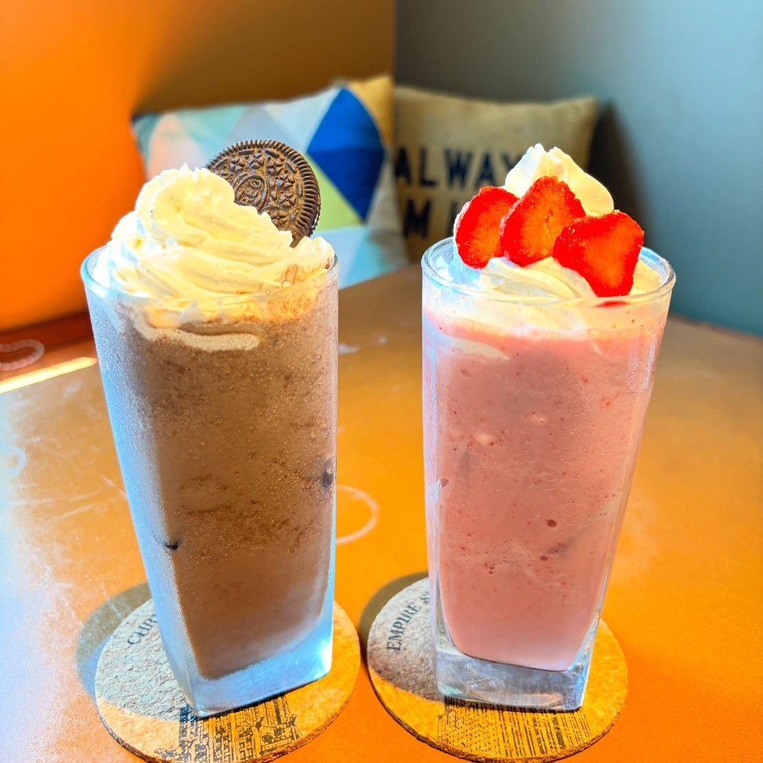 甘さ控えめのオレオシェイク、イチゴシェイクなどアレンジドリンクは全てお店で手作り!