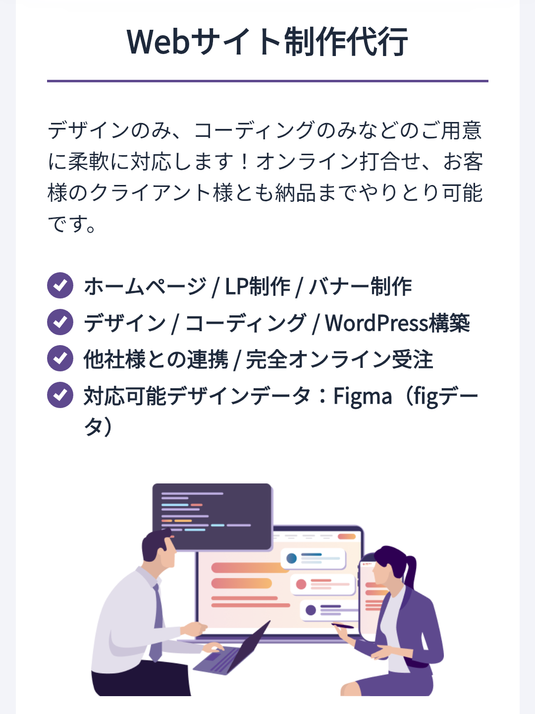 🖥️ 法人向けまたは個人向けホームページやサービスページなどWebサイトの制作事業を行なっています。