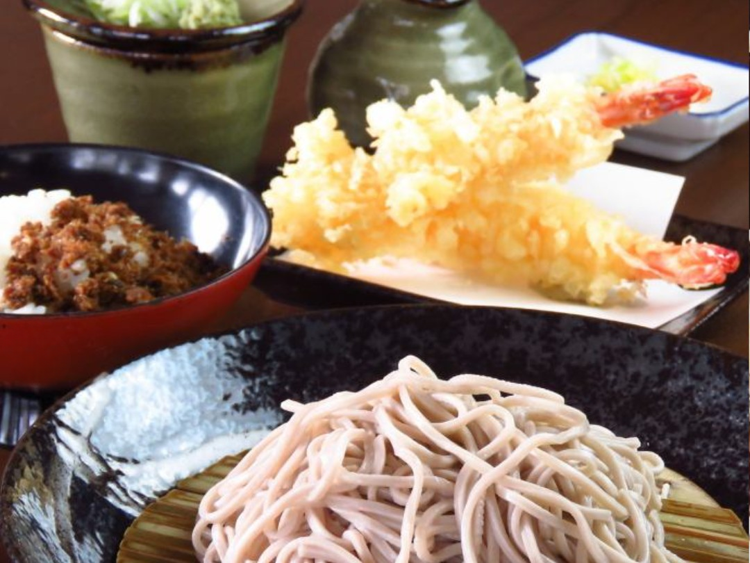 🍤【看板メニュー】こだわりのそば粉を使用した海老天そば