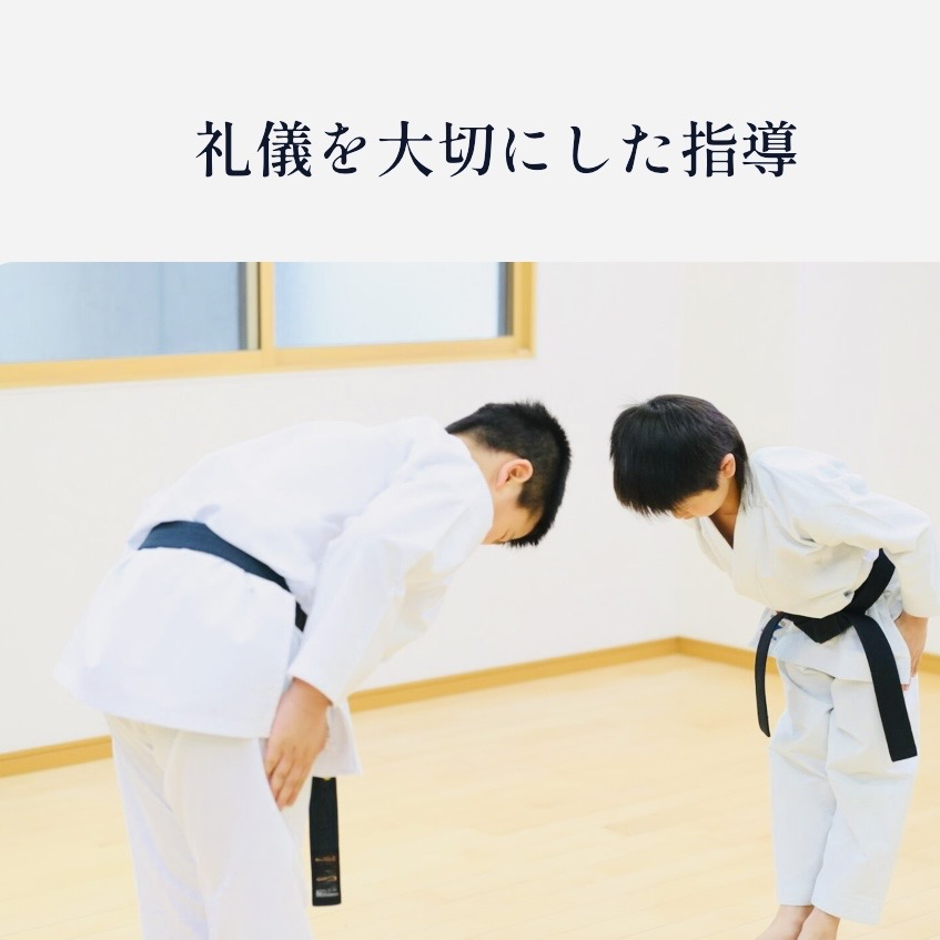 岡本空手運動教室では、空手の技術だけでなく、挨拶や返事、相手を敬う心など、日常生活にも活きる礼儀作法を丁寧に指導します。