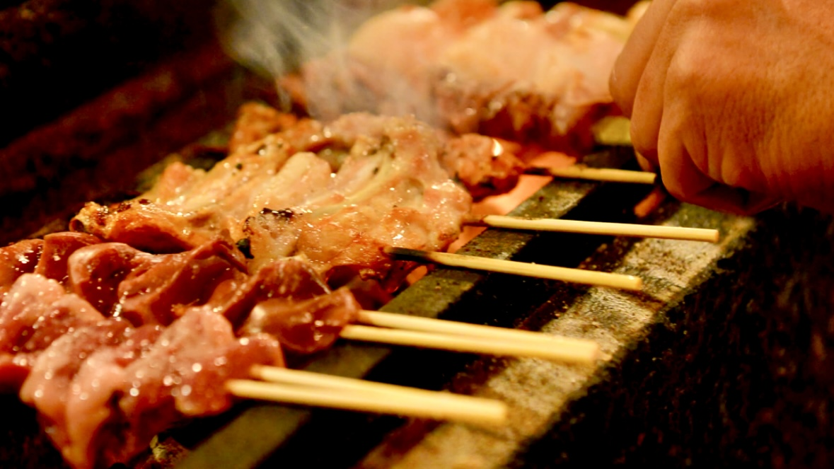 秋田比内地鶏、栃木地鶏、鶏の各部位を一本一本丁寧に焼き上げる串焼きがウリ。