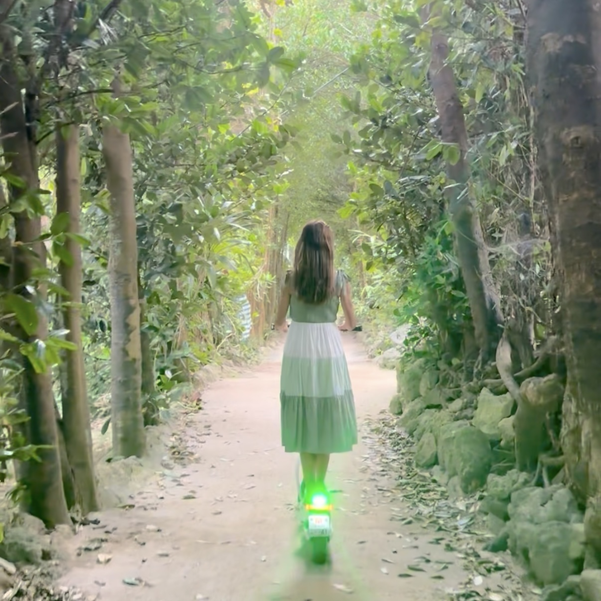 木漏れ日がきらめく緑のトンネルを、ゆったりと走り抜ける——