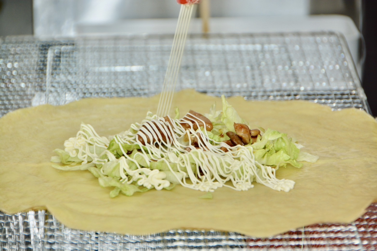 松山市大街道の真ん中で、鉄板の音が食欲を誘う――。